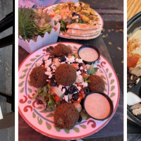 Falafel, roasted red pepper, portobello, romaine, caramelized onions and tahini. Includes a side salad.
