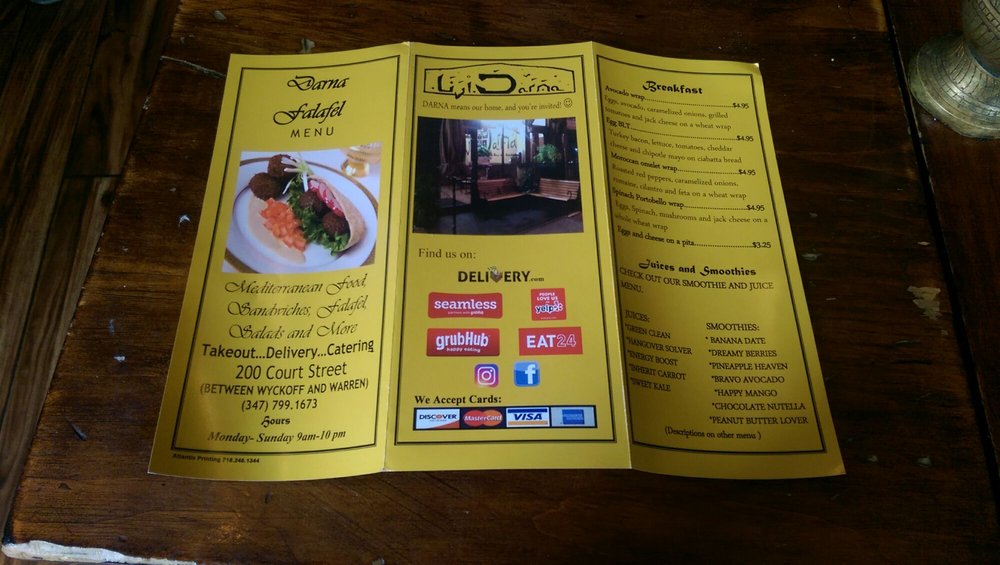 Darna Falafel, a hidden gem in Brooklyn, offers a unique Middle Eastern dining experience. Their menu boasts a variety of falafel options, smoothies, juices, and soups. Customers rave about the lamb platter, falafel wrap with mushrooms and caramelized onions, and fresh-made juices. The cozy cafe ambiance and friendly service add to the overall dining experience. With options for vegans and vegetarians, Darna Falafel caters to diverse palates. Don't miss out on their flavorful dishes, from the well-seasoned steak to the refreshing mint tea. Whether dining in or ordering delivery, Darna Falafel promises fresh and flavorful meals at reasonable prices. Experience the best falafel in the city at Darna Falafel.